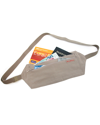 The Rick Steves Money Belt will store your essential things like your passport, money, tickets, credit cards, etc. You wear it above your hips, under your clothes. It is so thin, lightweight, and comfortable that some people have fallen asleep while wearing it: they forgot that they had it on!
